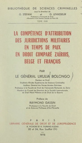 La compétence d'attribution des juridictions militaires, en temps de paix, en droit comparé zaïrois, belge et français