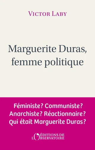 Résistante, communiste, gauchiste, mitterrandienne... Marguerite Duras défie toutes les catégories politiques. Etait-elle de gauche ? d'extrême gauche ? de droite ? Cette question traverse son oeuvre et sa vie, révélant la complexité d'un engagement qui refuse tout enfermement. De sa jeunesse baignée par le colonialisme à ses prises de position sur Mai 68, de la question algérienne au mitterrandisme, Victor Laby retrace le parcours politique de l'auteure du Barrage contre le Pacifique.