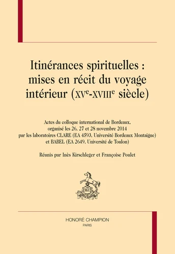 Itinérances spirituelles : mise en récit du voyage intérieur (XVe-XVIIIe siècle). Actes du colloque international de Bordeaux (26, 27 et 28 novembre 2014)