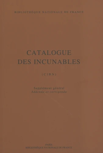 Catalogue des incunables (CIBN). Supplément général, addenda et corrigendaNicolas Petit, Denise Hillard, Ursula Baurmeister, Nathalie Coilly, Nadine Férey-PfalzgrafGrand Format120,00 €