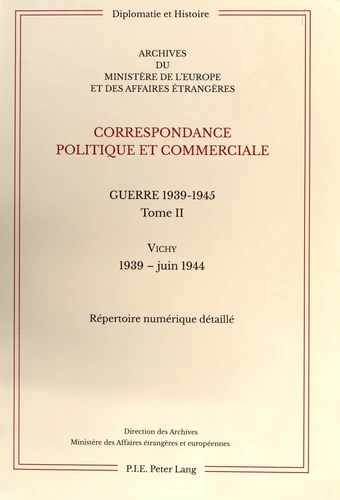 Les milliers de volumes recensés dans les pages qui suivent évoquent les vicissitudes de la diplomatie de l'Etat français qui, en dépit de la défaite et de l'occupation, partielle puis totale du territoire national, s'efforce de maintenir une action extérieure de plus concurrencée par celle de la France Libre.