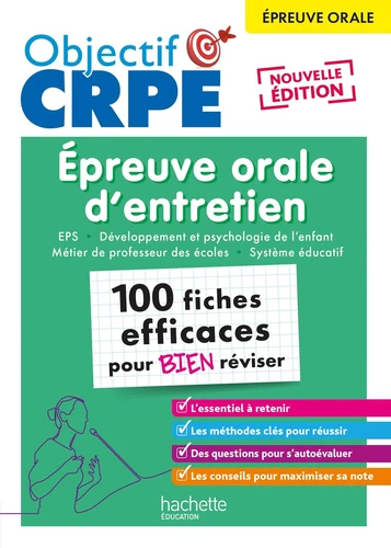 100 fiches pratiques, claires et visuelles pour réviser et réussir l'épreuve orale d'entretien au CRPE M2/L3 - Le descriptif de l'épreuve et des conseils pour maximiser sa note - L'essentiel à connaître pour mener un cours d'EPS - Les notions indispensables sur le développement de l'enfant - Un tour d'horizon du système éducatif français - Tout ce qu'il faut savoir sur le métier de Professeur des écoles - De nombreuses situations d'apprentissage pour illustrer les connaissances au programme - Plus de 250 QCM pour réviser - 30 sujets corrigés portant sur des situations d'enseignement ou de vie scolaire - Un format clé en main pour réviser efficacement.