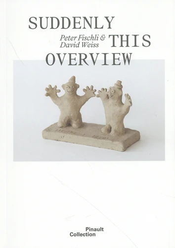 Première épopée sculpturale du duo suisse, commencée en 1981 et dont la date de fin correspond à la disparition de David Weiss, Suddenly This Overview (1981-2012) se compose de saynètes modelées dans une matière argileuse, et dont les titres apparaissent comme autant de punchlines pour décrire les situations inventoriées. L'argile crue, matière habituellement réservée à l'artisanat amateur, sert ici à des modèles détournés de leur sens premier - donc incompréhensibles sans la légende qui leur est associée. Vide-poche, croquettes pour chien, micro-paysages, mais aussi personnalités médiatiques, culturelles et intellectuelles : parmi les 76 figurines appartenant à la Collection Pinault, l'accent est mis sur un esprit populaire, universel, traduit dans une joyeuse absurdité. Fischli et Weiss tentent ici de rassembler un répertoire à la croisée de l'encyclopédie et de la bande dessinée. Dans un texte mordant, qui accompagne les reproductions, Nancy Spector (commissaire d'exposition, historienne de l'art et autrice, ancienne directrice du SolomonR. Guggenheim Museum et du Brooklyn Museum à New York) jette un regard amusé et éclairant sur cette vue d'ensemble. Principalement connus pour leurs sculptures et leurs vidéos, Peter Fischli (né en 1952) et David Weiss 1946-2012) ont collaboré pendant plus de trente ans, à partir du début des années 1950. Leur oeuvre commune s'ancre dans une diversité de supports-installations, sculptures, photographies, films, vidéos et livres illustrés. Portant un regard ludique et expérimental sur la société contemporaine, leur travail interroge avec humour et légèreté la vie, l'existence humaine et les paradoxes de notre monde.