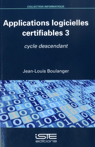 Applications logicielles certifiables se compose de plusieurs ouvrages qui présentent le développement d'une application logicielle critique. Ce troisième opus décrit le processus de réalisation d'une application logicielle en se focalisant sur la phase descendante. Le cycle de vie pris comme référence est le cycle en V. Ce cycle se veut le plus agile possible. La préparation des tests se fait donc lors de la phase descendante et permet d'identifier très tût des défauts.