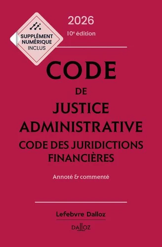 Le code officiel et les dispositions relatives au tribunal des conflits sont enrichis de bibliographies, de commentaires explicatifs et d'annotations de jurisprudence. De même, les dispositions du code des juridictions financières et les règles relatives au comptable public font l'objet de riches annotations de jurisprudence et de bibliographies. L'édition 2026 est notamment à jour des textes suivants:- décret n° 2024-1194 du 19 décembre 2024 modifiant divers textes pour tirer les conséquences de la création de l'Autorité de sûreté nucléaire et de radioprotection;- décret n° 2024-1174 du 10 décembre 2024 créant les Conseils de juridiction des tribunaux administratifs et cours administratives d'appel;- décret n° 2024-1168 du 6 décembre 2024 organisant le transfert de compétence entre juridictions de l'ordre administratif pour le contentieux de la tarification sanitaire et sociale.