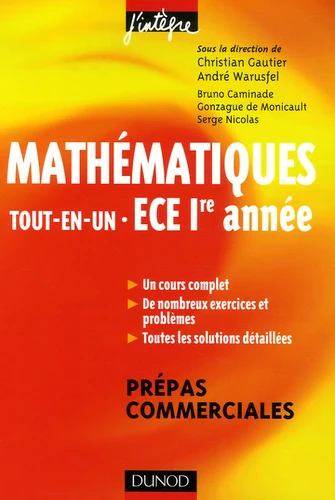 Cet ouvrage couvre en un seul volume la totalité des programmes de mathématiques de la 1e année des classe. préparatoires économiques et commerciales, filière économique (ECE). Conçu comme un ouvrage de référence, ce livre propose au lecteur une vision globale du cours dans le strict respect des programmes. A la fin de chaque chapitre, de nombreux énoncés d'exercices complètent le cours et permettent au futur candidat de s'entraîne) efficacement dans l'optique du concours.
