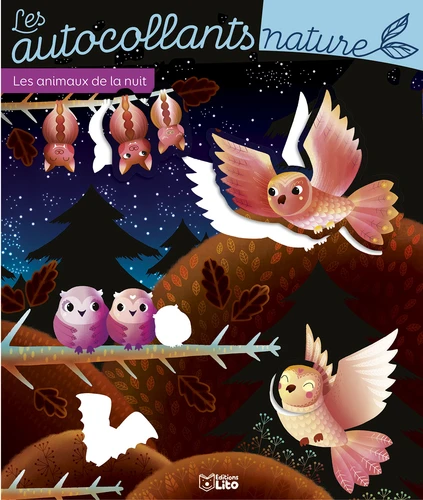 Ce livre d'autocollants est spécialement conçu pour les petits dès quatre ans. L'enfant découvre des animaux dans de grands décors naturels, très documentés. Dans ce titre, il retrouve les animaux de la nuit et vient coller les autocollants sur les zones blanches prévues à cet effet. Un petit texte écrit par l'illustratrice Leïla Brient accompagne chaque décor.