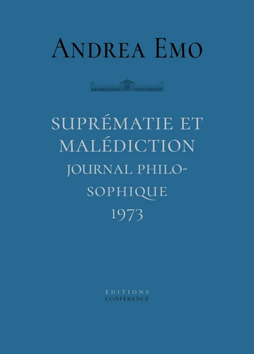 Suprématie et malédiction (Journal 1973) est la première traduction en langue française d'un livre d'Andrea Emo (1901-1983). L'ouvrage original est paru en 1998 en italien sous le titre : Supremazia e maledizione. Diario filosofico 1973, a cura di Massimo Donà e Romano Gasparotti, Milan, Raffaello Cortina Editore. Andrea Emo n'a jamais publié ni formé le projet d'aucun livre. Son oeuvre entière est constituée de près de 38 000 pages de cahiers rédigés de 1918 à sa mort.