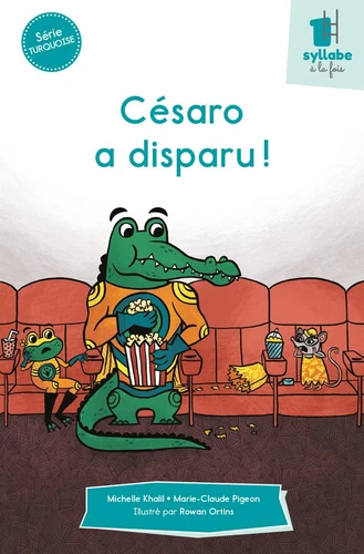 Césaro le souriceau a disparu de la salle de cinéma ! Il faut vite le retrouver, mais ce sera difficile : il est tellement petit... Dans ce livre, les mots contiennent : des graphèmes simples : a, e, i, o, l, m, s, etc. le graphème simple vedette c doux (comme dans " cerise ") les graphèmes complexes ch, ou, an, en, on, in, au, eau, ai et er tous les types de syllabes