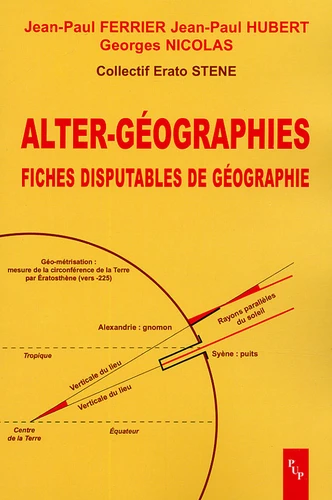 " Alter " langages : Pour les Erato Stene un langage scientifique n'est pas l'apanage d'une seule langue standardisée et appauvrie. " Parler géographie " ne peut être l'exclusivité d'un langage, d'une école, ou d'un paradigme dominant rendu obligatoire. Chaque lieu de réflexion géographique est un " centre" d'où s'expriment des propos dont le caractère scientifique peut être " réfuté " ou " disputé ". Pour comprendre les enjeux idéologiques et politiques sous-jacents à leurs démarches, les utilisateurs des discours géographiques doivent se " décentrer ". " Alter " mondes : La mondialisation se développe de manière décisive avec les grandes découvertes européennes et se répand du XVIIIe siècle au XXe siècle ; " For the present time... we... have to deal with a close political system... of world wide scope " (Halford John Mackinder, 1904) ; " Le temps du monde fini commence " (Paul Valéry, 1931). Les deux Guerres mondiales, la Guerre froide et les années 80 d'universalisation financière l'accélèrent. Cette " mondialisation " est actuellement contestée par l'" altermondialisation ". Les géographes ne pouvaient rester étrangers à ces " contestations ". " Alter " géographies : Les mondes se sont transformés, les géographes aussi. Aucune théorie ne s'est imposée à l'ensemble des géographes. Pourtant l'activité théorique en géographie s'est accrue depuis trente ans. Mais elle n'a pas eu des conséquences pratiques déterminantes. Les Erato Stene en ont pris acte. Chaque auteur explique dans les 27 Fiches qui constituent cet ouvrage ce qu'est " sa " géographie, non pour se faire plaisir, mais pour inviter les géographes et les non-géographes à participer au débat entre " l'évidente unité de la géographie " et " la pluralité des alter-géographies ".