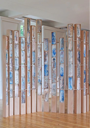 A partir de l'histoire du centre d'art Le Lait, Albi, hébergé dans une ancienne bibliothèque de la ville - précédemment demeure de l'Amiral de Rochegude dès 1787 -, Isabel Carvalho a imaginé pour l'exposition "Langages tissés" une série de pièces inédites qui propose de nouer son travail sur le langage avec la singularité d'Albi et de cet hôtel particulier. Elle s'est tout particulièrement intéressée à son ancien propriétaire, Henri Pascal de Rochegude et à sa passion pour la littérature.