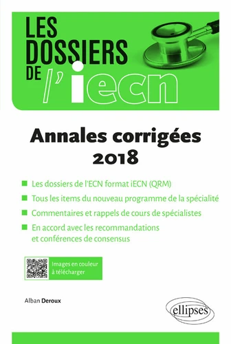 Dans cet ouvrage, l'ensemble du programme de l'iECN est couvert en annales. Les 18 dossiers, 2 LCA et les questions isolées, conformes au format officiel et à jour des dernières recommandations et conférences de consensus, proposent : 15 QRM ou QRU par cas , et 5 propositions de réponse par question ; Des cas rédigés et validés par des spécialistes de la discipline ; Des commentaires et rappels de cours détaillés dans les réponses.