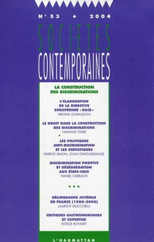 La thématique des discriminations a connu un développement fulgurant dans les huit dernières années. La prise de conscience du phénomène s'est opérée simultanément à sa prise en charge politique et juridique. Ce dossier s'intéresse au processus de construction des discriminations en tant que notion juridique, catégorie de l'action publique et concept scientifique. En croisant les approches en science politiques, droit et sociologie, le dossier revient sur les modalités de la construction des "discriminations" comme problème public.