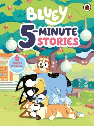 A collection of Bluey stories each crafted for reading in five minutes or less. Cheese and crackers! This treasury includes 6 stories of Bluey and Bingo and their amazing adventures with their friends and family! It's the perfect read for bedtime, when you're on-the-go, and anytime in-between. This book includes the stories The Pool, Bingo, Charades, Hammerbarn, Typewriter, and Baby Race. Don't miss these other awesome Bluey titles:Bluey: The DeciderBluey: CubbyBluey: GrandadBluey is an Emmy award-winning Australian children's television programme following the adventures of a loveable six-year-old Blue Heeler Puppy, Bluey and her family.