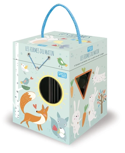 Le soleil brille dans le ciel, la journée a déjà commencé! Lis le livre illustré et découvre ce que fait le petit chien après s'être levé! Apprends à reconnaître les formes du rond, du carré, du triangle et du rectangle, et devine quelle est leur place à l'intérieur du cube du " bonjour ". Amuse-toi à encastrer les formes et à compléter chaque scène !