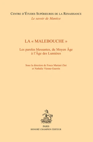 Pourquoi les paroles font-elles mal ? Quel mal spécifique les paroles méchantes infligent-elles ? "Male bouche" , le personnage du Roman de la Rose, est la figure tutélaire de cet ouvrage qui tente d'apporter des éléments de réponse à ces questions en analysant les raisons culturelles pour lesquelles, dans tel ou tel contexte historique, les meurtrissures infligées par la langue revêtent une signification particulière et en convoquant plusieurs objets d'étude, parmi lesquels le droit, la littérature, le théâtre, les pamphlets, les traités de civilité.