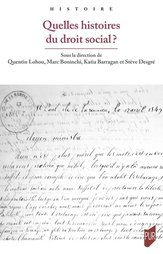 La condition ouvrière, les formes de solidarités à travers le syndicalisme et le mutualisme, la période de l'entre-deux-guerres et le régime de l'Etat français entre 1940 et 1944, les territoires anciennement colonisés par la France, tels sont les thèmes traités ici et constitutifs du droit social et de son histoire. La diversité des contributions témoigne des multiples façons dont le droit et ses acteurs peuvent être appréhendés, tout particulièrement en matière de relations du travail et de protection sociale.