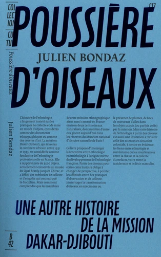 L'histoire de l'ethnologie a largement insisté sur les pratiques de collecte d'objets, y compris sur ceux ayant été volés aux populations qui en avaient la charge. La mission Dakar-Djibouti, qui traversa le continent africain entre 1931 et 1933, est considérée comme fondatrice de l'ethnologie professionnelle en France. Elle a rapporté presque 3500 objets actuellement conservés au musée du quai Branly-Jacques Chirac et a défini des méthodes de collecte et d'enquête qui ont marqué la discipline. Mais comment comprendre que les membres de cette mission ethnographique aient aussi ramené en France près de deux cents oiseaux naturalisés dont nombre d'entre eux gisent aujourd'hui dans les réserves du Muséum national d'histoire naturelle ? Comment interpréter le fait que, avant même d'atteindre le Sénégal, Marcel Griaule, le directeur de la mission, réclame au sous-directeur du musée d'ethnographie du Trocadéro des bagues pour étudier les migrations d'oiseaux ? Pourquoi Michel Leiris, écrivain surréaliste devenu ethnologue, s'intéresse-t-il au langage de la tourterelle chez les Dogon ? Que sont devenus les quatre rapaces rapportés vivants par Griaule à la ménagerie du Jardin des Plantes ? Quels savoirs ornithologiques ont été recueillis tout au long de la mission, auprès des populations africaines ? Basé sur de nombreuses archives, pour la plupart inédites, et de riches illustrations, ce livre propose d'interroger la rencontre entre ethnologie et ornithologie à l'origine même du développement de l'ethnologie française. Partir des oiseaux pour écrire cette histoire oblige à changer de perspective, à pointer les affinités entre des pratiques d'observation et de collecte, à interroger la transformation d'oiseaux en spécimens ou la présence de plumes, de becs, de morceaux d'ailes dans les objets acquis (ou parfois volés) par la mission. Mais cette histoire de l'ethnologie à partir des oiseaux est aussi une invitation à revisiter celle des sciences en situation coloniale, à mettre en évidence les affinités entre ethnologie et surréalisme ou les interférences entre la chasse et la collecte d'artefacts, voire entre la taxidermie et le désir masculin.