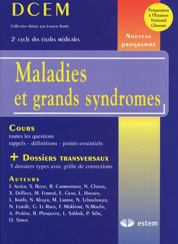 Le nouveau programme du DCEM, avec un découpage et une organisation des connaissances par modules thématiques, replace les patients et leurs pathologies dans un cadre transversal naturel, permettant au futur médecin d'améliorer leur prise en charge immédiate et à long terme. Cette nouvelle collection traite l'intégralité des items du programme modulaire du DCEM. Pour chaque ouvrage, le directeur de collection, Laurent Karila, a fait appel à des auteurs de spécialités différentes qui ont pris soin de faire ressortir l'incontournable trame qui permettra à l'étudiant de réussir ses modules transdisciplinaires. Les chapitres, rédigés de façon claire et synthétique, enrichis de nombreux tableaux, encadrés et illustrations, facilitent la mémorisation de l'essentiel.