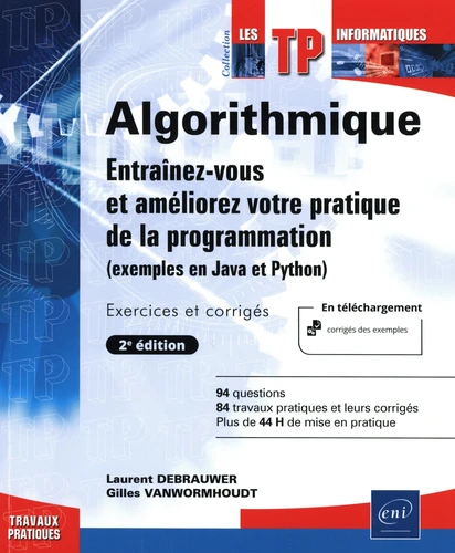 Une connaissance des principaux concepts des langages Java ou Python est un pré-requis à la lecture de ce livre. Les corrigés des exemples en Java et Python sont disponibles en téléchargement. Pour les apports théoriques sur ce sujet, Editions ENI édite, dans la collection Ressources Informatiques, le livre " Algorithmique - Techniques fondamentales de programmation".
