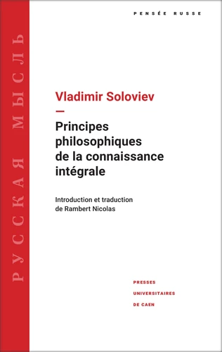 Commencés en 1877, mais jamais achevés, les Principes philosophiques de la connaissance intégrale marquent l'entrée de Soloviev dans son propre système. Il se promet d'indiquer aux lecteurs la direction devant conduire à organiser l'humanité en un seul grand vivant sur le modèle éternel d'une vie en Dieu harmonieuse, celle d'avant la chute de Sophia. Nous nous situons donc avec ce livre comme avant la création du monde et du temps ou, pour le dire avec les mots de Soloviev, avant la métaphysique, dans ce qu'il appelle la " logique organique ".