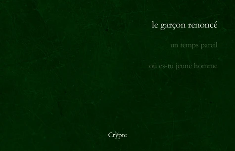 je suis la fuite et la demeure la fuite sans exil chaque jour de voyage prolongeant le désert chaque avancée nouvelle renouvelant la steppe je suis la fuite sans danger et le corps sans besoin ni d'amis ni de bras la parole sans besoin ni d'écoute ni de voix je suis la fuite et le village l'abdication de la terre je suis la fuite et la demeure en territoire jamais acquis la tangente et le lieu sans besoin de rencontre je suis la touche du corps la chair en devenir les gestes déplacés et la fuite des gestes je suis la main qui s'offre trop tard à la caresse je suis peau dure et sèche la fuite des désirs les gestes arrêtés le garçon arrêté et le geste empêché je suis la fuite et la demeure le garçon déposé le garçon de la marche assurée de la marche je suis le garçon renoncé par avance
