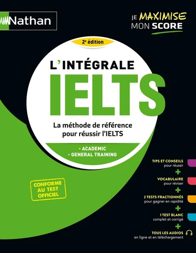 L'IELTS est l'un des tests d'anglais les plus prisés pour les études à l'étranger ou pour s'installer à l'international. Il est passé chaque année par plus de 3, 5 millions de candidats à travers le monde et est reconnu par plus de 10 000 organisations. Maximisez votre score grâce à notre véritable programme de révision et d'entraînement ! Conforme au test officiel, l'Intégrale IELTS propose : Une préparation complète : Décryptage du test, conseils pour déjouer les pièges et optimiser votre score, explication des conditions de passation des deux versions du test, IELTS General Training et IELTS Academic. Entraînement progressif aux 4 parties du test (Reading, Listening, Speaking, Writing) pour les deux versions du test, IELTS General Training et IELTS Academic : exercices et astuces. Possibilité de travailler votre oral avec des exemples de réponses enregistrées pour la partie Speaking et les scripts correspondants. Boost your focus Améliorez votre concentration et votre rapidité grâce aux tests fractionnés. Un Test blanc Test Academic complet pour vous entraîner au format de l'épreuve et consolider votre préparation. Tout le vocabulaire d'anglais à connaître Apprentissage intensif et ludique à travers 30 thèmes clés : comptabilité, art, éducation, santé, économie, sport, famille, etc Tous les audios en accès direct et téléchargeables en mp3 sur le site www. nathan. fr/integraleielts Conçu par des formateurs spécialisés : Serena Murdoch Stern , britannique, est formatrice d'anglais en France, spécialisée en anglais des affaires et enseignante dans de grandes écoles parisiennes. Auteur de nombreuses méthodes de langue à succès elle vous fait bénéficier de son expérience acquise auprès des candidats au IELTS. Maria Parker , anglophone, est accréditée en méthode de gestion de projet PRINCE2. Spécialisée en cours de soutien pour jeunes enfants et adolescents, elle possède un talent inné pour augmenter la confiance en soi chez ses élèves. Susan Walker , anglophone, diplômée de Bell School of Languages, UK, formatrice d'anglais en France et spécialisée en coaching pour les examens de Cambridge, PET, FCE, CAE, CPE, et IELTS.