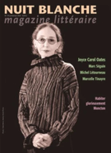 Dans ce numéro de la revue Nuit blanche, visitez Moncton, la littéraire, capitale de la culture acadienne. Rencontrez Serge Patrice Thibodeau et Émilie Turmel alors que le premier cède la place à la seconde à la direction littéraire des Éditions Perce-Neige. Au cour de la discussion nichent les enjeux d'une transition réussie et les particularités de l'édition en Acadie. En couverture, Joyce Carol Oates dont Thérèse Lamartine explore l'ouvre multiforme à travers quatre ouvrages récents (ou pas).