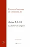 L'exégèse traditionnelle ne retient pas l'hypothèse de la glossolalie (paroles incompréhensibles dites sous inspiration) mais plutôt celle de la xénoglossie : les disciples semblent, miraculeusement, parler différentes langues. Le problème est de savoir si le miracle se produit chez les locuteurs (qui parlent donc ces langues étrangères) ou chez les auditeurs (qui comprennent la langue des disciples). L'ouvrage dresse un panorama sur l'exégèse contemporaine de ce texte biblique : il propose une étude précise de la structure du texte et établit plusieurs rapprochements avec des textes contemporains. Les Pères, tant grecs que latins, ont peu commenté les Actes mais ont fourni sur ce thème des réflexions d'une grande richesse dans leurs sermons.