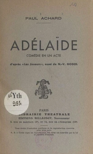 Adélaïde. Comédie en un acte d'après Les joueurs, de Gogol