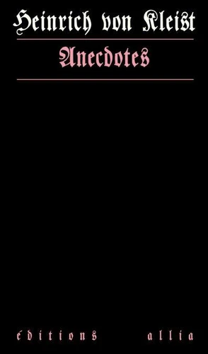 Von Kleist en ressort endetté et privé de soutiens. Il se suicide en novembre 1811. Parmi les quelque 150 textes écrits par von Kleist en 153 numéros, 34 ont reçu le nom d'Anecdotes. Certains parlent d'"histoires courtes", de "curiosités". Fantasques ou caustiques, transgressives voire offensives, la force de ces proses fait de ce recueil une ouvre à part entière. D'abord voué à la carrière militaire, Heinrich von Kleist (1777-1811) s'en détourne pour plonger dans l'étude de la philosophie et des mathématiques.