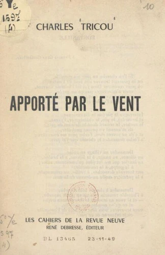 "Si l'on cherche un jour ma guenille, on la pourrait trouver aux bois de Fontanille où pour recontrer Dieu j'ai fui l'homme souvent, mais n'interrogez pas qu'un garde, un chasseur ; à tout prenez garde ; interrogez l'ombre et le vent." Paru en 1949, un nouveau recueil de 7 textes en prose du poète Charles Tricou.