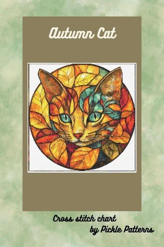These cross stitch charts are a whimsical circular design of a ginger cat reminiscent of art nouveau stained glass. The cats face is surrounded by autumnal coloured leavesThe image is 200x200 stitches. The image is split into 12 separate charts with symbols to represent the colours used for the stitches. Both coloured and black and white versions of the charts are included to allow you to choose whichever chart you find easiest to follow personally.