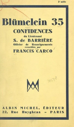 Blümelein 35. Confidences du lieutenant S. de Barrière, officier de renseignements