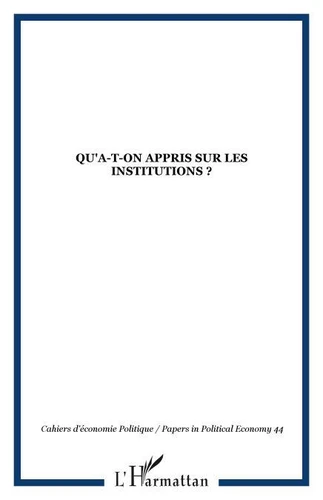 Au sommaire de ce numéro: Institution. Histoire d'une notion et de ses utilisations dans l'histoire avant les institutionnalismes, par Alain Guery; L'émergence de la problématique des institutions en économie, par Jean-Jacques Gislain; Institutionnalismes et structuralismes: oppositions, substitutions ou affinités électives?, par Bruno Théret; Les institutions dans la théorie de la régulation, par Robert Boyer; L'approche néo-institutionnelle: des concepts, une méthode, des résultats, par Claude Ménard; Institutions et économie des conventions, par Christian Bessy et Olivier Favereau; Théorie des jeux et institutions, par Bernard Walliser; Réflexion sur les fondements institutionnels de l'objectivité marchande, par André Orlean et Les connexions entre la tradition autrichienne et quelques développements récents en matière d'analyse économique des institutions, par Pierre Garrouste.