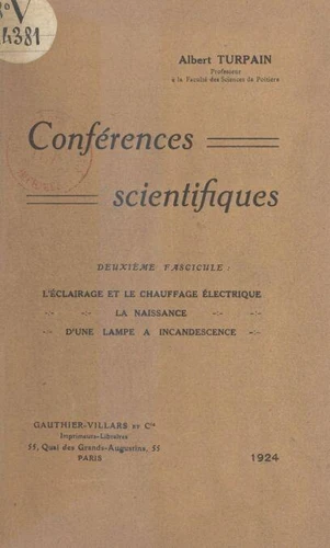 Conférences scientifiques (2). L'éclairage et le chauffage électrique. La naissance d'une lampe à incandescence
