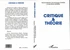 Critique et théorie présente, outre des réflexions sur l'Ecole de Francfort, Benjamin, Sartre, la critique d'art, la psychanalyse, les arts plastiques et le cinéma, une traduction inédite d'un texte d'Adorno et la présentation des dernières pensées du Barthes des Leçons au Collège de France.