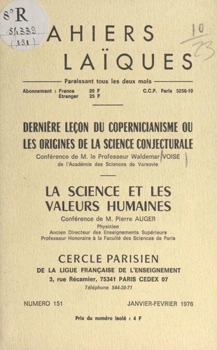 Dernière leçon du copernicianisme ou les origines de la science conjecturale. La science et les valeurs humaines