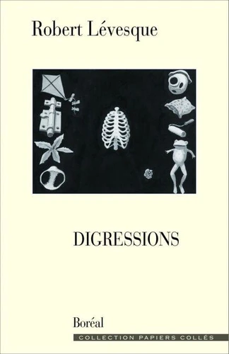 Digression : « développement écrit qui s'écarte du sujet » (Robert) ; « développement étranger au sujet » (Larousse) ; bref : hasard et liberté, bifurcations, détours, intuitions subites, comme il arrive à un promeneur qui n'a pas de destination et qui se laisse porter par l'inspiration du moment, les rencontres inopinées et, surtout, le plaisir de la vraie découverte. Dans la prose pétillante qu'on lui connaît, Robert Lévesque nous fait entrer ici dans le laboratoire intime de sa pensée et de son écriture.