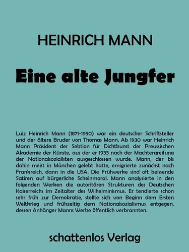 Luiz Heinrich Mann (1871-1950) war ein deutscher Schriftsteller und der ältere Bruder von Thomas Mann. Ab 1930 war Heinrich Mann Präsident der Sektion für Dichtkunst der Preussischen Akademie der Künste, aus der er 1933 nach der Machtergreifung der Nationalsozialisten ausgeschlossen wurde. Mann, der bis dahin meist in München gelebt hatte, emigrierte zunächst nach Frankreich, dann in die USA. Die Frühwerke sind oft beissende Satiren auf bürgerliche Scheinmoral.