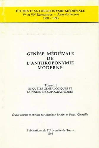Genèse médiévale de l'anthroponymie moderne. Tome 3, Ve et VIe rencontres, Azay-le-Ferron, 1991-1993