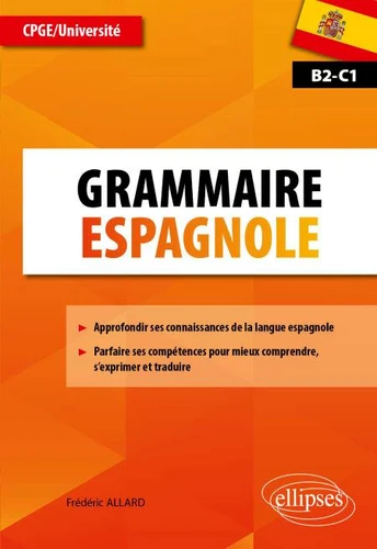 Cette nouvelle grammaire espagnole pour le supérieur répond de façon précise et concrète aux besoins des étudiants du supérieur (de la licence aux concours) et des élèves de CPGE lorsque l'étude de la langue exige davantage de précision et de nuance, par exemple comme c'est le cas dans les travaux de thème et de version. Divisée en trois grandes parties (mise au point théorique, entraînement, corrigés), elle comprend à la fois les clés et les outils pour :. approfondir ses connaissances de la langue espagnole ;. acquérir des compétences pointues pour mieux comprendre, s'exprimer et traduire en utilisant une syntaxe plus élaborée, . s'autoévaluer grâce aux séquences d'exercices thématiques ciblés, proposés par ordre de difficulté croissant, et corrigés.
