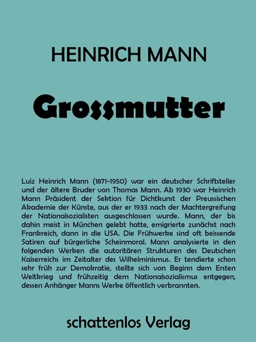 Luiz Heinrich Mann (1871-1950) war ein deutscher Schriftsteller und der ältere Bruder von Thomas Mann. Ab 1930 war Heinrich Mann Präsident der Sektion für Dichtkunst der Preussischen Akademie der Künste, aus der er 1933 nach der Machtergreifung der Nationalsozialisten ausgeschlossen wurde. Mann, der bis dahin meist in München gelebt hatte, emigrierte zunächst nach Frankreich, dann in die USA. Die Frühwerke sind oft beissende Satiren auf bürgerliche Scheinmoral.