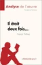 Décryptez Il était deux fois... de Franck Thilliez avec l'analyse du PetitLitteraire.fr ! Que faut-il retenir de Il était deux fois...? Retrouvez tout ce que vous devez savoir sur cette ouvre dans une analyse complète et détaillée. Vous trouverez notamment dans cette fiche : . Un résumé complet . Une présentation des personnages principaux . Une analyse des spécificités de l'ouvreUne analyse de référence pour comprendre rapidement le sens de l'ouvre.À propos de la collection LePetitLitteraire.fr : Plébiscité tant par les passionnés de littérature que par les lycéens, LePetitLittéraire.fr est considéré comme une référence en matière d'analyse d'ouvres classiques et contemporaines.