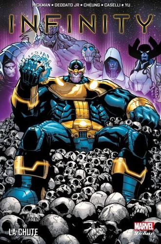 Tous les Avengers doivent s'unir pour affronter une menace d'ampleur cosmique : les implacables Bâtisseurs. Bien qu'épaulés par les principaux empires galactiques, les héros seront-ils en mesure de vaincre ces redoutables ennemis ? Rien n'est moins sûr. Et en quittant la Terre, ils ne se doutent pas qu'ils laissent à Thanos et à son Ordre Noir la possibilité d'attaquer la planète... Jonathan Hickman (Secret Wars) est accompagné de Jim Cheung (Avengers : La croisade des enfants), Stefano Caselli (Secret Warriors), Leinil Francis Yu (Secret Invasion) et Mike Deodato Jr (Infinity Wars) pour signer l'épopée Infinity.
