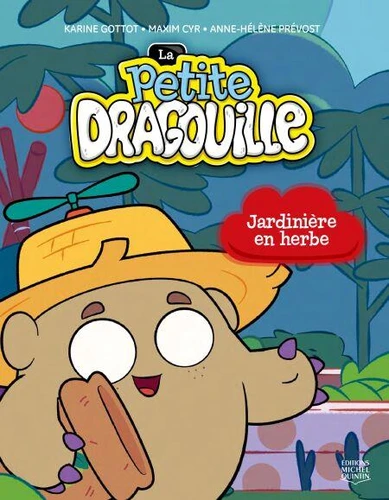 La petite dragouille se rend au jardin pour préparer un festin à ses amis. Qu'est-ce qu'elle va bien faire pousser? Peut-être un pommier spaghetti ou un arbre à sandwich aux oufs.