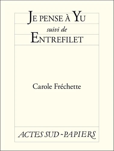 "Je pense à Yu se situe au cour de la question qui me hante comme auteur : comment parler du monde sans faire abstraction de soi ? Comment parler de soi sans oublier le monde ? Mon écriture est en tension entre l'intime et le monde." (Carole Fréchette)