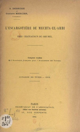 L'escargotière de Mechta-el-Arbi, près Châteaudun-du-Rhumel. Extrait des Comptes rendus de l'Association française pour l'avancement des sciences, Congrès de Tunis, 1913