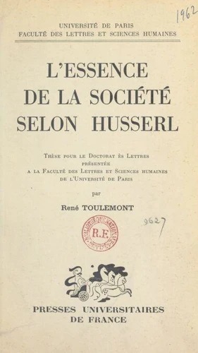 L'essence de la société selon Husserl. Thèse pour le Doctorat ès lettres