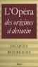 L'Opéra des origines à demain... le titre indique assez le propos dynamique et optimiste de l'ouvrage. Le chapitre qui clôt celui-ci et traite de l'opéra post-bergien démontre suffisamment que pour Jacques Bourgeois cette prestigieuse aventure, loin d'appartenir au passé, laisse toutes ses chances à la musique de demain.
